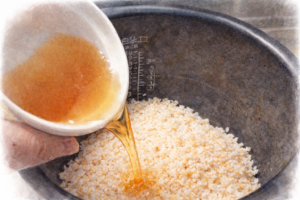 - 炊飯器に米とBを入れる